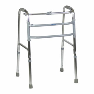 O segundo que vamos citar, é o “Andador Dobrável” que por sua vez é muito semelhante ao fixo com a diferença de poder ser dobrado, facilitando assim o transporte e a estocagem do andador. Outro ponto interessante do andador dobrável é que sua estrutura pode ser montada ou desmontada com simples ajustes, fazendo dessa maneira com que ele possa ser facilmente operado pelo próprio usuário.